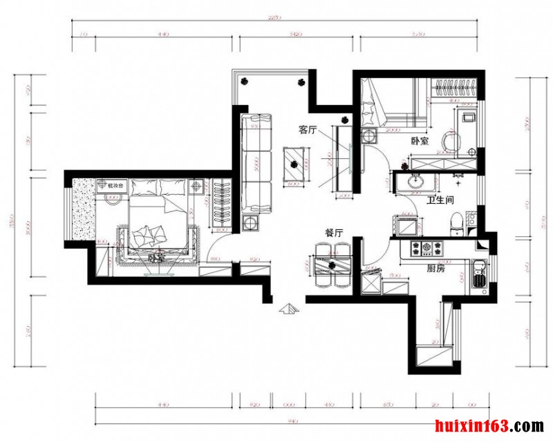竞地溯源阁-72.00平米二居室东南亚风格装修效果图- 平面图